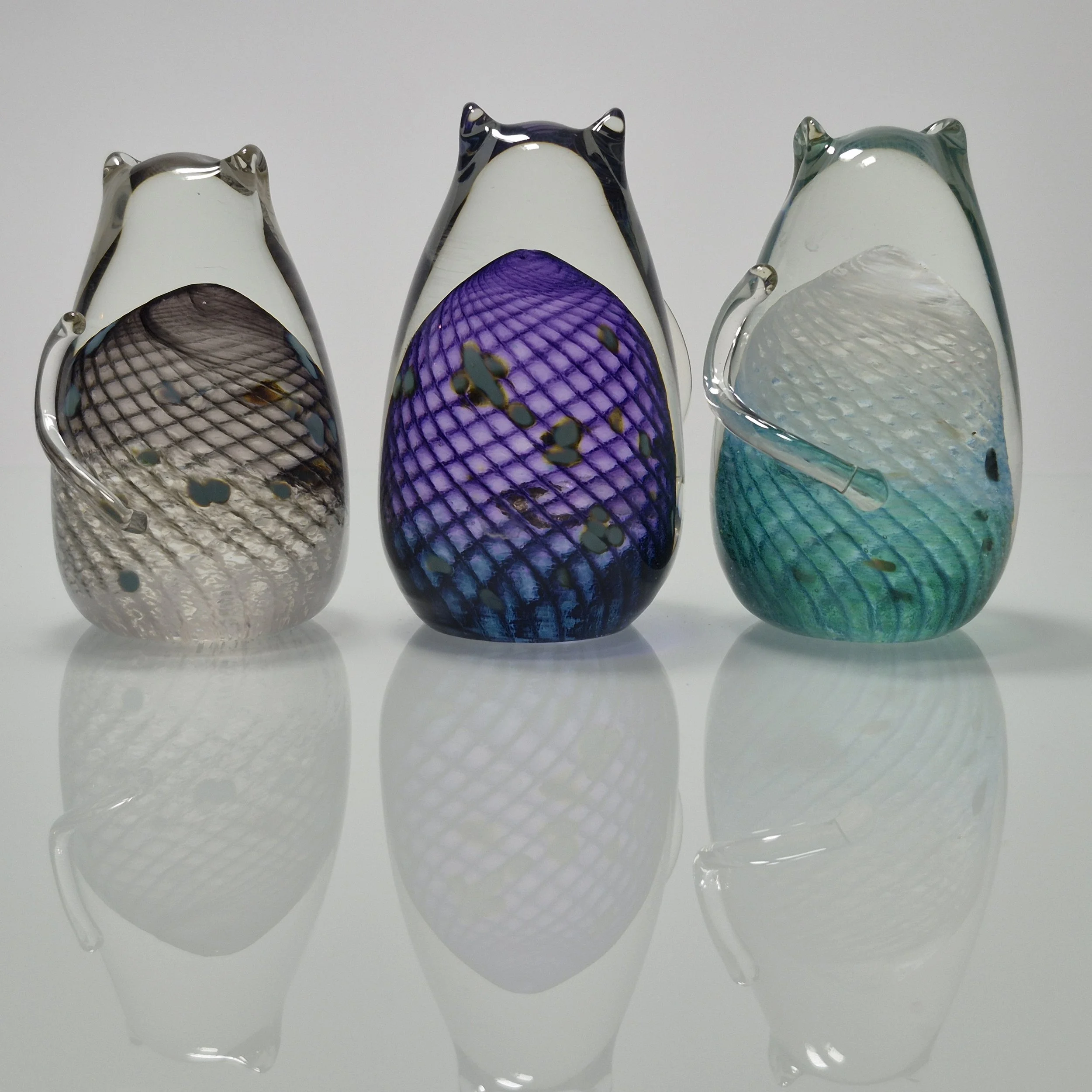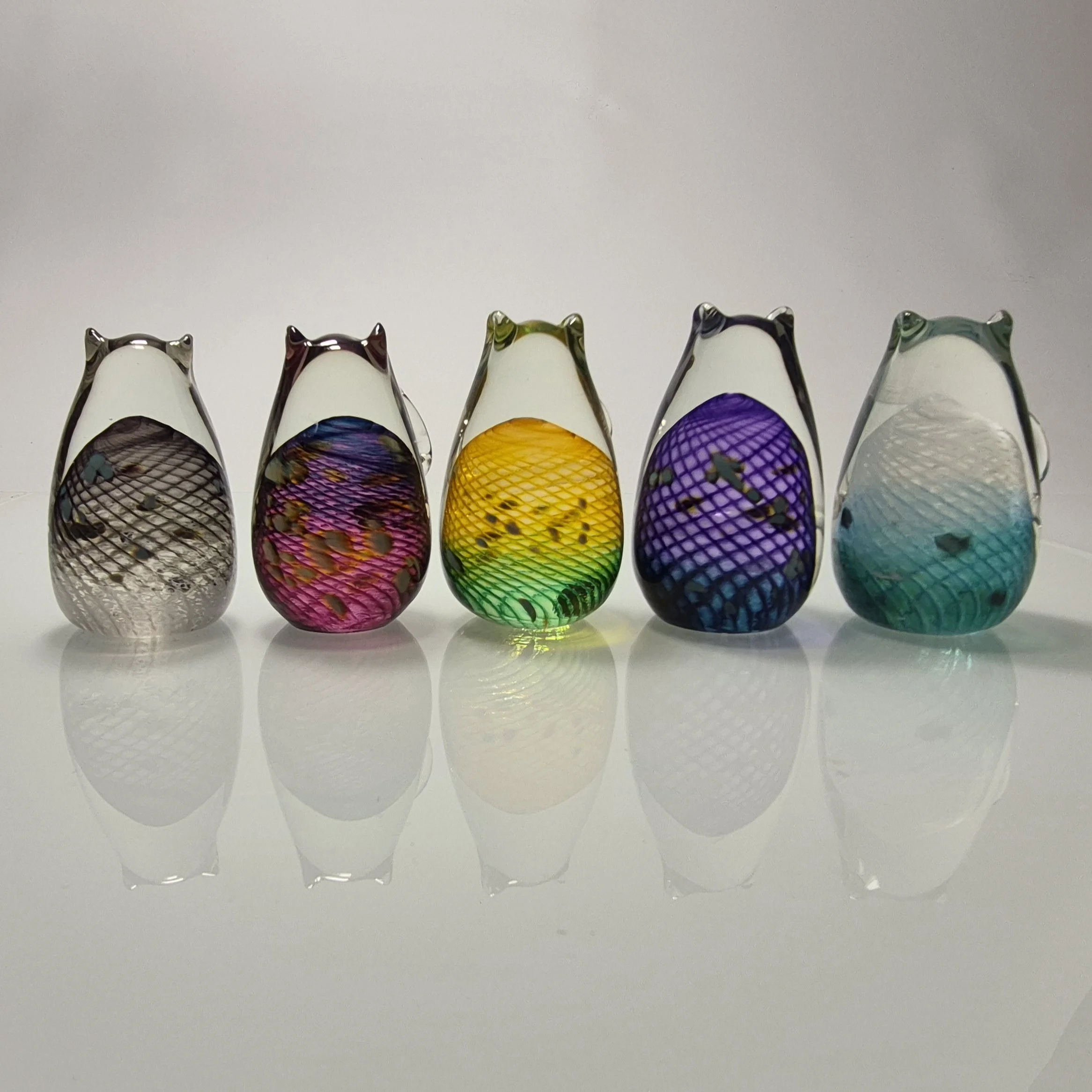 These 2.5" solid glass cats come in five bold, vibrant colours that sparkle with personality.